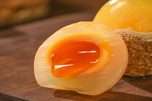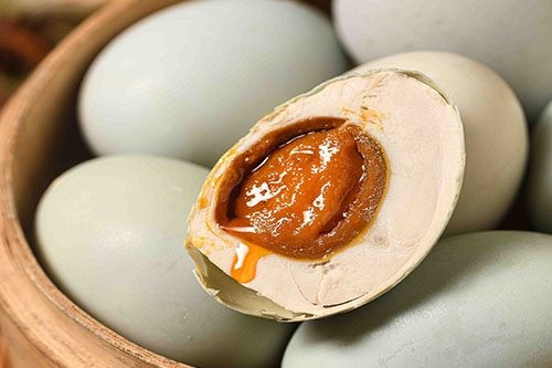 “蒲江,汉临邛县地。后魏置广定县,隋改为蒲江,南枕蒲水故也。”自古盛产井盐,并因独有口感而盛行于庙堂显贵,又有贡盐一说,民间用之者少。相传明末天下大乱,古盐井湮废,蒲江手工鸭蛋制作世家古氏佬者见状突发奇想,欲以古井盐水改良制作混沌子,古佬遂以上好鸭蛋为料,祖传五谷焚燃法制作炭灰数斗,秘制石灰适量,古井盐水腌之苴于灰沙嘴,三日一番,共三番,此后取出风干并置于老坛两周。